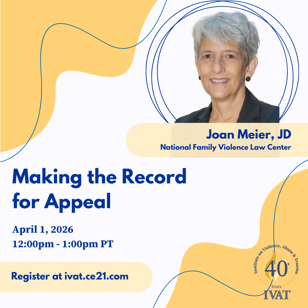 Litigation and Evaluation involving Abuse Allegations in Family Court Cases (LEFCC) is a grant subsidized innovated specialized training for family court lawyers, mental health professionals, and child custody evaluators. The 30-hour IVAT certification program consists of 20 hours of in-person training and 10 hours of online webinars. Requires some previous experience and/or training in areas of domestic violence and/or child maltreatment in the last five years. Qualified applicants may apply for the 30-hour training program which consists of 20 hours in-person training and 10 hours of online training. Faculty consultations and technical assistance are available for those in the certification program. Training sponsored by the Professional Consortium on Abuse Allegations in Family Court.