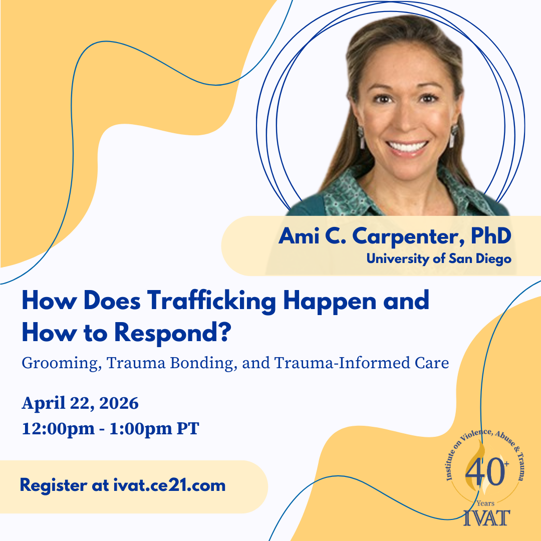 IVAT is a comprehensive resource and training center addressing all aspects of violence, abuse and trauma across the lifespan. We strive to bridge the gaps between policy, practice and research to help improve current system-response by cultivating multidiscipline prevention and intervention strategies that promote trauma-informed, culturally sensitive, and gender-responsive prevention and interventions. For the past 25-years we have provided professionals and students access to our Summits and trainings to learn from leading experts in prevention, identification, investigation, and interventions for exploitation, abuse, and trauma.